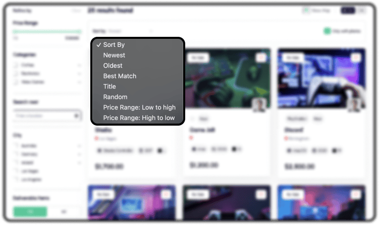 Sort results by relevance, price, date, etc.
