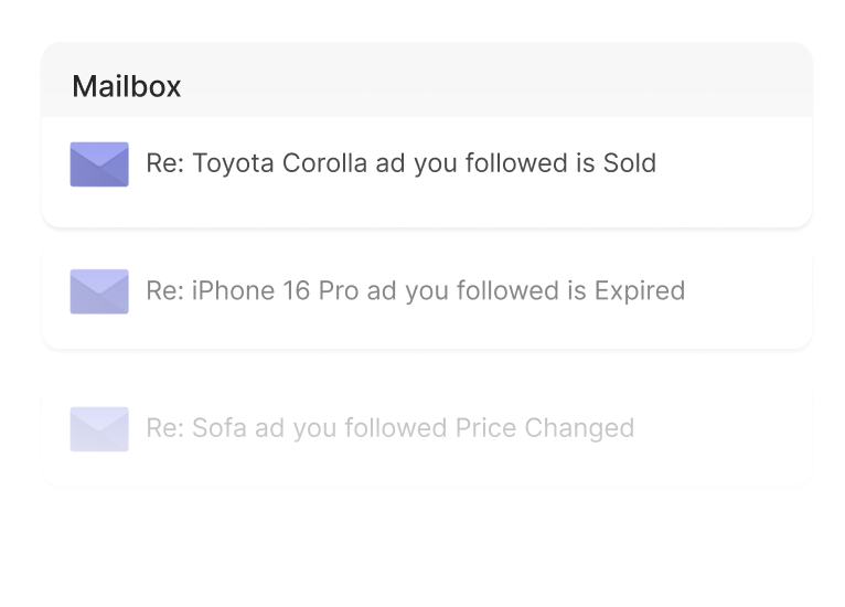 Sends users timely updates via email for listings, messages, and account activity.