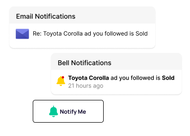 Notify Me helps boosting engagement by sending email and on-site bell notifications for price or status changes on followed listings.