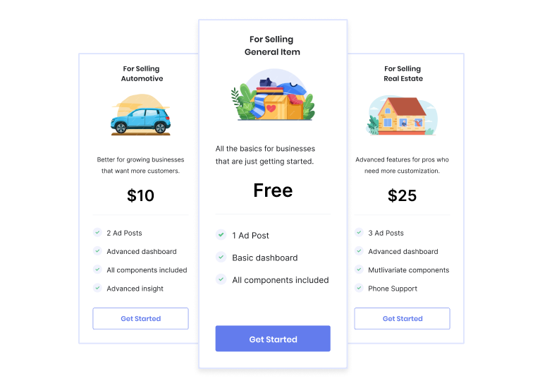 Maximize earnings by offering various pricing plan options such as Free plan, Pay Per Ad, and Discounted Ad Packages.