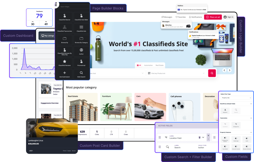 The user dashboard is vital for managing and growing a classified ads site. It provides key insights into ad performance, helping admins drive growth.