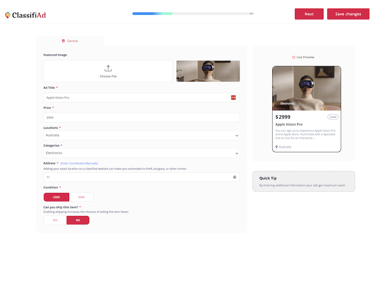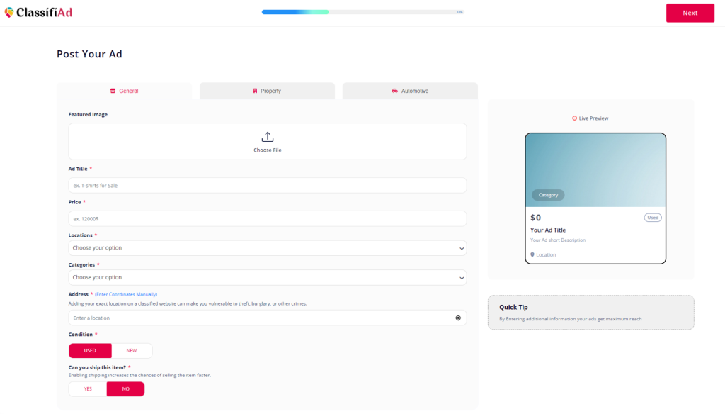 A conversion-optimized ad submission form is crucial for any online classified site. ClassifiAd provides advanced features that make ad creation and management seamless and efficient for all users.